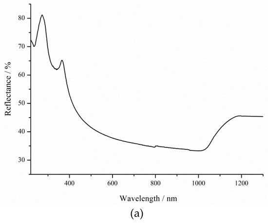 Reflection peaks (8.4%) 280 and 370 nm are associated with direct interband transitions in c-Si in the case of 73 nm thick porous layers [34]. At these wavelengths, the reflectance decreases to 6.4 and 5.4% as the thickness increases due to rising treatment duration. The effect of changing the thickness is now critical for shorter wavelengths [35]. The reflection peak at 370 nm shifts along the x-axis to 425 and 480 nm for samples after 3600 s etching under 460 and 8000 lx illumination, respectively. The roughness of the surface can influence the shift in the position of the maximum. Hence, it can be concluded that the reflectance increase in the visible spectral range, as shown in Figure 8, is solely the result of the surface roughness induced by illumination, which is consistent with literature results [36]. As a result, an 8000 lx illumination of silicon during etching promotes an increase in the roughness and reflection of the porous silicon surface, which is then called brown.