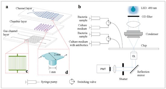 - Lee, W.B.; Fu, C.Y.; Chang, W.H.; You, H.L.; Wang, C.H.; Lee, M.S.; Lee, G.B. Miniaturized antimicrobial susceptibility test by combining concentration gradient generation and rapid cell culturing. Biosens. Bioelectron. 2017, 87, 669–678. [Google Scholar] [CrossRef]