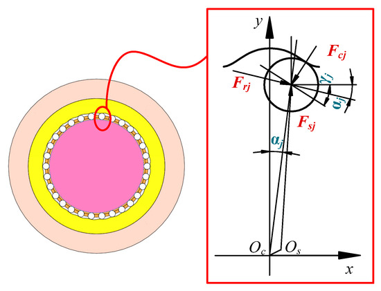 The forces of a selected single movable are shown in Figure 6, where Oc and Os represent the center of the central gear and harmonic generator, γj is the angle between the tangent line of the center track of the movable tooth and the x-axis, Fcj, Frj and Fsj are the forces of the movable tooth that are applied by the central gear, tooth carrier and harmonic generator, respectively.