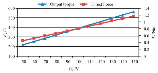 (2) As the driving voltage Up increases, the output forces of the piezoelectric actuator increase linearly. Therefore, the output force of the piezoelectric actuator can be adjusted by changing the driving voltage.