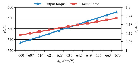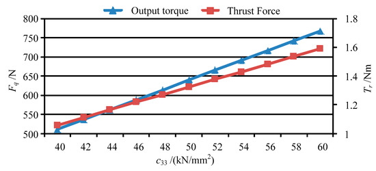 (3) The variation of output torque and thrust force with d33, c33 and Sp is similar to that with driving voltage Up. That is, the output torque and thrust force increase in direct proportion to those parameters.