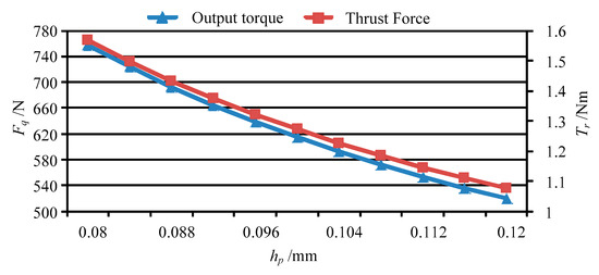 (4) As the thickness of the piezoelectric layer hp increases, the output torque and thrust force decrease nonlinearly. Therefore, the smaller the thickness of the piezoelectric layer, the better the performance of the piezo-driven focusing mechanism.