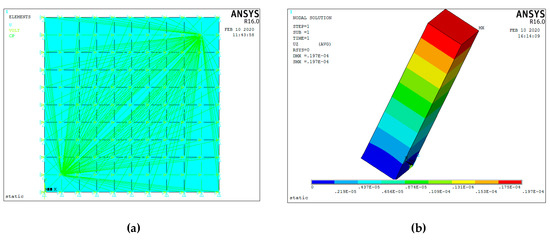 During the finite element analysis, the APDL language of ANSYS is used to program the finite element analysis of the piezoelectric actuator. Then, the analysis results of the piezoelectric actuator are imported into ANSYS Workbench for the finite element analysis of the whole structure of the piezoelectric focusing mechanism. The mesh size was set as 2 mm, and the structure was meshed by free partition type. The finite element analysis process is shown in Figure 18.