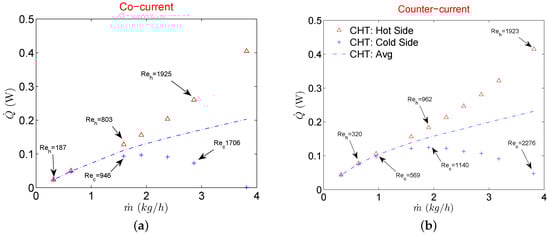 Heat transfer rate for CHT analysis when flow configuration is cocurrent (a), and counterflow (b).