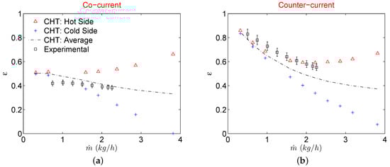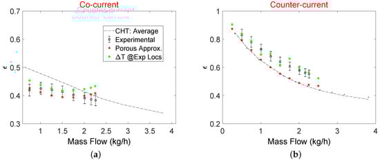 Heat exchanger effectiveness for CHT analysis when flow configuration is cocurrent (a), and counterflow (b).