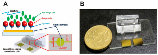 - Nguyen, N.-V.; Yang, C.-H.; Liu, C.-J.; Kuo, C.-H.; Wu, D.-C.; Jen, C.-P. An Aptamer-Based Capacitive Sensing Platform for Specific Detection of Lung Carcinoma Cells in the Microfluidic Chip. Biosensors 2018, 8, 98. [Google Scholar] [CrossRef]