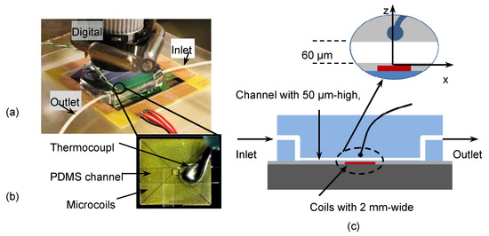- Yushan, Z.; Sawan, M. Planar Microcoil Array Based Temperature-Controllable Lab-on-Chip Platform, Magnetics. IEEE Trans. Magn. 2013, 49, 5236–5242. [Google Scholar]