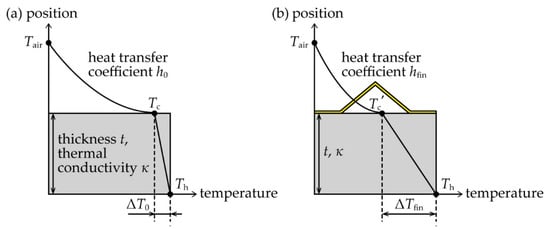 Alternatively, when a fin was attached to the top of the element, we assumed the heat transfer coefficient between the fin and air was hfin and the temperature difference applied to the element was ΔTfin. Then, ΔTfin can be obtained in the same way as ΔT0: