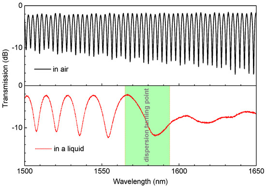 Variation of the interference spectra of the TTMF when immersed in air and a liquid.