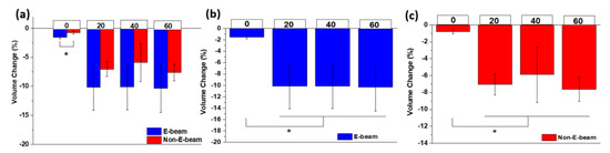 - Bruyas, A.; Moeinzadeh, S.; Kim, S.; Lowenberg, D.W.; Yang, Y.P. Effect of Electron Beam Sterilization on Three-Dimensional-Printed Polycaprolactone/Beta-Tricalcium Phosphate Scaffolds for Bone Tissue Engineering. Tissue Eng. Part A 2019, 25, 1–9. [Google Scholar] [CrossRef]