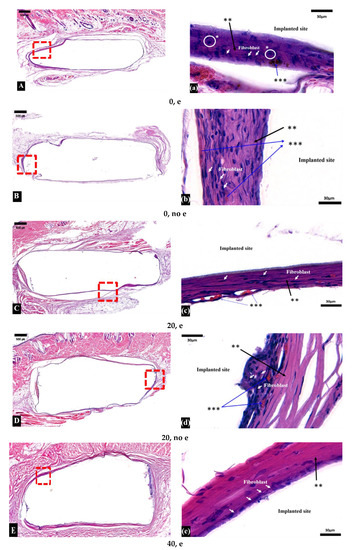 - Barbeck, M.; Lorenz, J.; Holthaus, M.G.; Raetscho, N.; Kubesch, A.; Booms, P.; Sader, R.; Kirkpatrick, C.J.; Ghanaati, S. Porcine Dermis and Pericardium-Based, Non–Cross-Linked Materials Induce Multinucleated Giant Cells After Their In Vivo Implantation: A Physiological Reaction? J. Oral Implantol. 2015, 41, 267–281. [Google Scholar] [CrossRef]