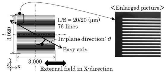 - Kikuchi, H.; Sumida, C. Observation of Static Domain Structures of Thin-Film Magnetoimpedance Elements with DC Bias Current. IEEE Trans. Magn. 2019, 55, 4001405. [Google Scholar] [CrossRef]