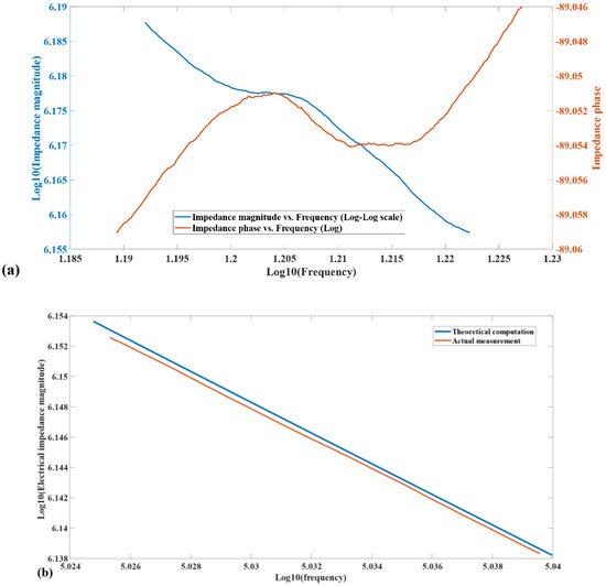 When the frequency of the electrical actuation signal is away from the mechanical frequency, such as the frequency band in Figure 9b, the reflection of the mechanical behavior back into the electrical domain becomes negligible. Consequently, the following approximation, for small signal actuation levels, of the impedance magnitude, becomes reasonable: