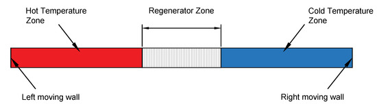 The proposed system consisted of three zones: hot temperature zone, cold temperature zone, and porous regenerator zone. The model assumed that the hot temperature zone was contracting at a constant rate, pushing the hot gas inside the regenerator, while the cold temperature zone expanded at the same rate to maintain constant overall volume during the cooling period. After that, the hot zone started to expand, and the cold zone contracted to retain their original volumes as the cold gas entered the regenerator zone from the other side when the flow reversed direction during the heating period. The hot and cold temperature zones were designed to ensure that gas entered at and during the cooling and hot periods, respectively.