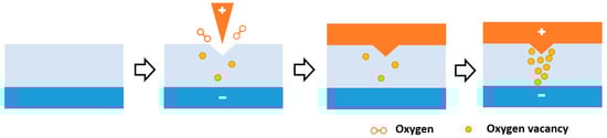 - Waser, R.; Aono, M. Nanoionics-based resistive switching memories. Nat. Mater. 2007, 6, 833–840. [Google Scholar] [CrossRef]