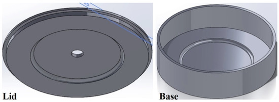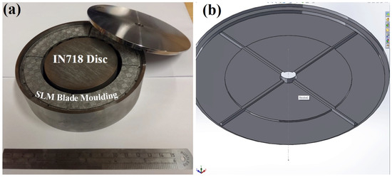 (a) An image of the parts including IN718 inserted disk; (b) Computer-aided Design (CAD) model of a modified can lid.