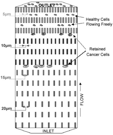- Mohamed, H.; Murray, M.; Turner, J.N.; Caggana, M. Isolation of tumor cells using size and deformation. J. Chromatogr. A 2009, 1216, 8289–8295. [Google Scholar] [CrossRef]