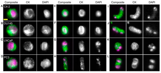 Images of cultured prostate cancer cell (A–D) and CTCs from prostate cancer patients (E–L) captured using the CellSearch system. (Reprinted from [35]).