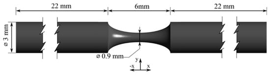 The shape of the artery was a full cylindrical tube with a circular cross-section and an axisymmetric blockage (Figure 1). The selected diameter (3 mm) was based on the literature [40,41] and the length of the stenosis was defined as twice the normal diameter, an assumption applied by several researchers [42,43,44,45]. In addition, the length of the inlet zone (22 mm) was selected to ensure the creation of a fully developed inlet flow.