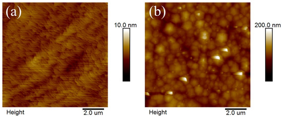 AFM surface morphology of planar III-polar (a) and N-polar (b) MQW samples.