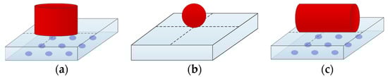 Contact state diagram of the three different surface types: (a) plane; (b) convex spheres; (c) convex cylinder.