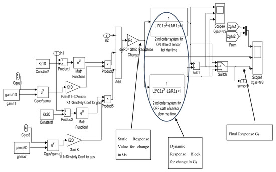 Based on the block diagram proposed in Figure 1, an initial simulation was carried out on the gas mixture. Figure 2 shows the Simulink model of differentiating a gas mixture using sensors with specific parameters according to different gases.