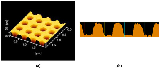(a) An atomic force microscopy (AFM) image of a plasmonic chip with a hole-arrayed structure. (b) A cross-sectional view of the periodic structure.