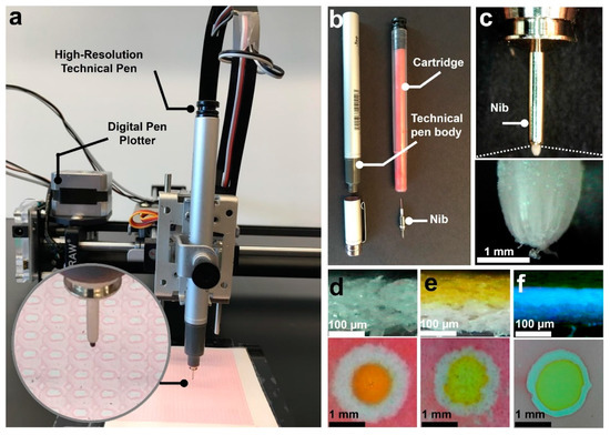 Hardware setups: Desktop pen plotter, AxiDraw (Evil Made Scientist Laboratories, Sunnyvale, CA, USA); wide Copic marker (Imagination International Inc., Eugene, OR, USA); broad calligraphy wide nib for wide Copic marker (Imagination International Inc., Eugene, OR, USA); MakerBot Replicator 3D printer (MakerBot Industries, New York City, NY, USA); Form2 3D printer (Formlabs Inc, Somerville, MA, USA); Copic Multiliner SP technical pen, 0.1, 0.05, and 0.03 mm diameter nib sizes (Imagination International Inc., Eugene, OR, USA); benchtop laminator, GBC Inspire (Swingline, Lake Zurich, IL, USA); pH meter (35624-23) (Cole-Parmer Instrument Company, Vernon Hills, IL, USA); MM-840 EFLEX digital microscope (Carson Optical, Ronkonkoma, NY, USA); and CO2 laser cutter (Universal Laser Systems, Inc., Scottsdale, AZ, USA).