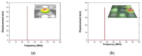 - Akasheh, F.; Fraser, J.; Bose, S.; Bandyopadhyay, A. Piezoelectric micromachined ultrasonic transducers: Modeling the influence of structural parameters on device performance. IEEE Trans. Ultrason. Ferroelectr. Freq. Control 2005, 52, 455–468. [Google Scholar] [CrossRef]