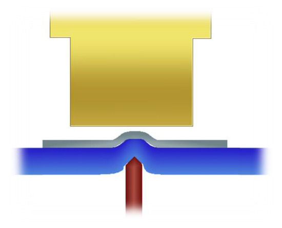 In comparison to components with standard thicknesses of more than 400 µm, ultrathin chips should not be detached from wafer dicing tapes with standard die-ejector tools. These tools are shaped as needles or cones and pierce from below the wafer dicing tape on the bottom of the chip, stretching the tape in the area of the chip and weakening the adhesion forces to the chip. Simultaneously, a vacuum tool picks up the chip from above. This procedure often destroys the ultrathin chips due to mechanical stress peaks. The needle rather punctures locally the thinned silicon material while most of the area adheres to the wafer dicing tape (Figure 1). An analytical evaluation of crack formation in ultrathin silicon dies due to the usage of die-ejector tools can be found in [28].