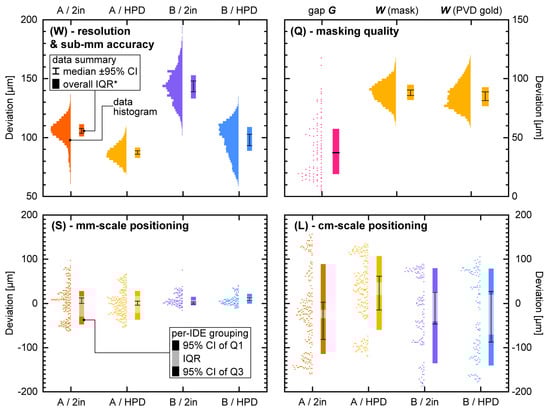 | Resolution | <1 µm | <10 µm | ~100 µm | 87 µm line width, ±58 µm accuracy (wafer-scale) |