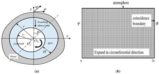 Geometry and mesh of a typical gas-lubricated microbearings (a) geometry of bearing; (b) mesh of the finite element model (FEM).