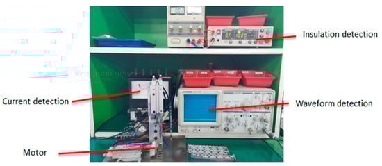 Vibration motors are mainly used in mobile phones, tablets, and smart wearable devices. Their main function is to make the device vibrate and give users timely message reminders. With the arrival of the 5G era, mobile phones and tablets have become an indispensable tool for daily office and social affairs, and each mobile phone and tablet has at least one miniature vibration motor. Therefore, the demand for miniature vibration motors is increasing. At present, around 2 billion vibration motors are produced every year in the world, and the total number of motors produced by Chinese domestic manufacturers accounts for more than 80% of them []. Domestic manufacturers inspect the motors by observing the waveform of the oscilloscope with the naked eye to judge the quality of the motor. As shown in Figure 1, manual inspection is slow, and the quality of the inspection cannot be guaranteed [,].