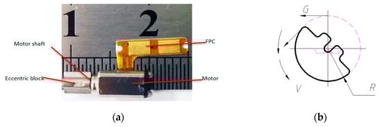 (a) Eccentric vibrating motor. (b) Eccentric block of eccentric vibrating motor.