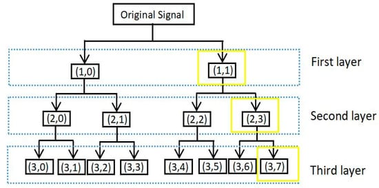 Wavelet packet multi-scale analysis decomposes the entire space into orthogonal sums of multiple subspaces according to different scale factors , as shown in Figure 11. Unified orthogonal decomposition of scale subspace and wavelet subspace into is []:
