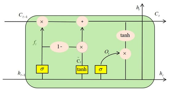 The forget gate and the memory gate determine the updated information, and then, the old cell state can be updated accordingly. The Sigmoid layer determines which part of the cell state will be output. Finally, the cell state is processed by tanh to obtain a value between −1 and 1 to determine the final output.