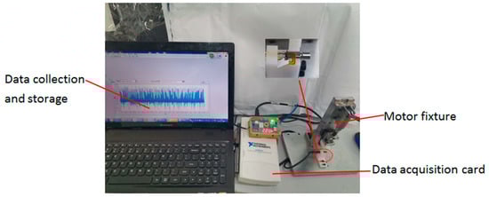 The acquisition card was more convenient for collecting voltage signals, therefore, it was necessary to add a sampling resistor in the acquisition circuit to convert the current signal into a voltage signal. The resistance value can neither be too large nor too small. Excessive resistance will affect the motor power. The heating of the resistor will also increase during work. If a small sampling resistor will reduce the output voltage of the resistor, the proportion of the collected signal error offset and interference noise will increase. It thereby reduces the sampling accuracy. After many tests and comparisons, a resistance of 30 ohms was selected to obtain better results. The specific collection device is shown in Figure 15.