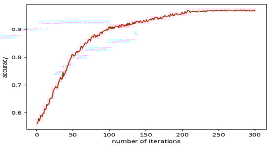 It can be seen from Figure 17 that the number of iterations had a positive correlation with the accuracy of the LSTM network, but the accuracy did not change after the number of iterations reached about 300. Therefore, the number of iterations of the network was set to 300. The rest of the hyper-parameters, parameters such as batch size and learning rate, are shown in Table 6.
