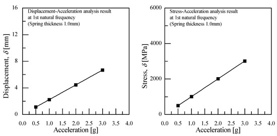 The results of the finite element analysis (FEA) for the displacement and the stress according to the vibration acceleration.