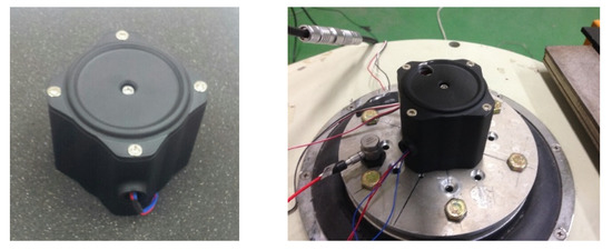 The performance test was conducted for the VEH device with the mechanical stopper on a high-speed train test. The same VEH devices, which were confirmed through laboratory tests, were installed on the axle box of the high-speed train to verify the performance. Only the resonant frequencies were different with the VEH-1 device having a 50 Hz resonant frequency, and the VEH-2 device having a 45 Hz resonant frequency. Figure 19 shows the two VEH devices’ installation on the axle box’s test jig on the high-speed train. Each lower coil of the VEH device and the voltage measurement system in the cabin were connected to measure the generated voltage in real-time during the high-speed train drive period, as shown in Figure 19. The results were expressed in terms of one lower coil in the VEH device for the standardization of the test results above. Each coil of a VEH device can be connecting in series or parallel.