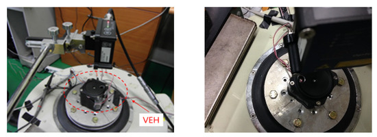 Finally, the performance test was conducted for the VEH device with a mechanical stopper through the high-speed train test. The voltage was relatively constant at around ±10 V in the high-speed train running at a speed of 300 km/h. The experimental values of the total Pexp-veh-T of each VEH device with the mechanical stopper were 60.6064 and 56.9742 mW, measured on the high-speed train test. It confirmed that each VEH device with the mechanical stopper meets and exceeds the 50 mW threshold of the design target of the power generation’s performance for the train system, and the durability could be secured for the high-speed train.
