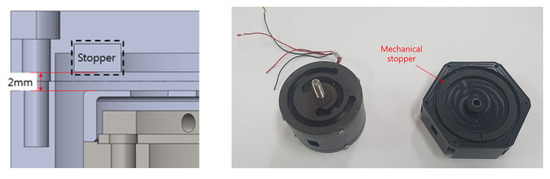 The maximum moving displacement of the spring was 2.0 mm with the mechanical stopper. As for the mechanical stopper, a ring-type of ethylene propylene diene monomers (EPDMs) ethylene rubber material was selected.