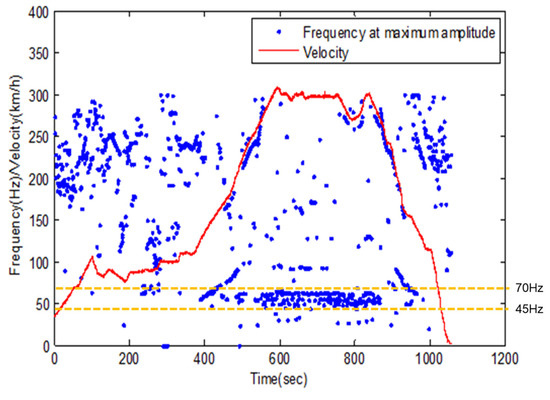 The fast fourier transform (FFT) results and velocity data, the resonant frequency occurred mainly when the frequency was 50 Hz during 300 km/h driving, however, the primary frequency band was between 45 and 70 Hz.