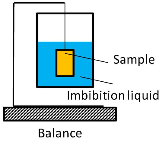 To uncover the connection between pore size distribution and spontaneous imbibition characteristics, several experimental tests have been conducted. The first one is spontaneous imbibition test. Figure 3 shows the counter-current imbibition equipment. It mainly includes an electronic balance and a data recorder. The electronic balance has an accuracy of 0.0001 g, and it measures the mass of liquid imbibed in cylinder core samples. These samples are submerged in deionized water with all faces open. The computer records the data of mass and time during the imbibition process. The experiments were performed at room pressure (0.1 MPa) and temperature (25 °C). The detailed processes can be found in our pervious works [31].