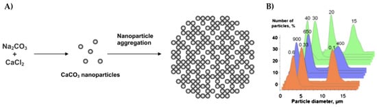 - Trushina, D.B.; Bukreeva, T.V.; Antipina, M.N. Size-Controlled Synthesis of Vaterite Calcium Carbonate by the Mixing Method: Aiming for Nanosized Particles. Cryst. Growth Des. 2016, 16, 1311–1319. [Google Scholar] [CrossRef]