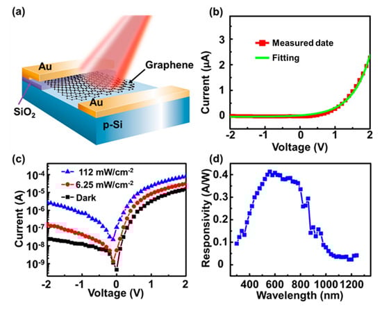 - An, X.; Liu, F.; Jung, Y.J.; Swastik Kar, S. Tunable graphene–silicon heterojunctions for ultrasensitive photodetection. Nano Lett. 2013, 13, 909–916. [Google Scholar] [CrossRef] [PubMed]