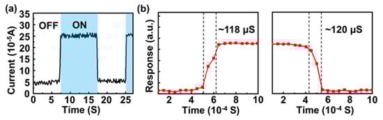 - Fukushima, S.; Shimatani, M.; Okuda, S.; Ogawa, S.; Kanai, Y.; Ono, T.; Inoue, K.; Matsumoto, K. Low dark current and high-responsivity graphene mid-infrared photodetectors using amplification of injected photo-carriers by photo-gating. Opt. Lett. 2019, 44, 2598–2601. [Google Scholar] [CrossRef] [PubMed]