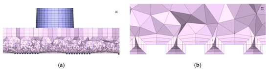 Meshing of (a) the part and (b) details of the elements in the microstructures.