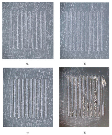 - Sorgato, M.; Masato, D.; Lucchetta, G. Effects of machined cavity texture on ejection force in micro injection molding. Precis. Eng. 2017, 50, 440–448. [Google Scholar] [CrossRef]