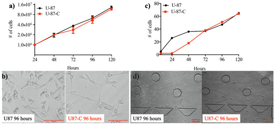 3.1. Influence of Conditioned Medium on U87 Proliferation in 12-Well Plate and Microfluidic Device